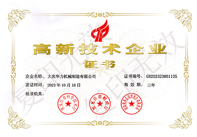 大慶華力機(jī)械制造有限公司是從事三次采油技術(shù)研發(fā)、油田含油污水處理設(shè)備及油田成套設(shè)備的研發(fā)、生產(chǎn)、制造及技術(shù)服務(wù)的公司。公司成立于2001年,注冊資金3090萬元。通過了質(zhì)量管理體系、環(huán)境管理體系、職業(yè)健康安全管理體系、服務(wù)認(rèn)證證書;取得了D級壓力容器制造生產(chǎn)許可資質(zhì)、壓力管道元件制造生產(chǎn)許可證、黑龍江省高新技術(shù)企業(yè)證書。