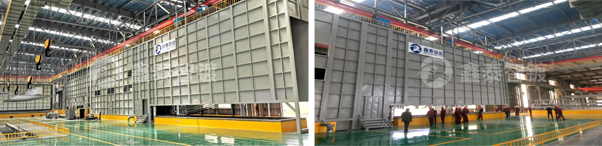 線型描述:從黑件上掛到助鍍成一條直線;鍍鋅、冷卻、鈍化環(huán)線運行。總體呈直線排布。前處理“側(cè)進(jìn)側(cè)出”,鍍鋅及后處理“端進(jìn)端出”。
