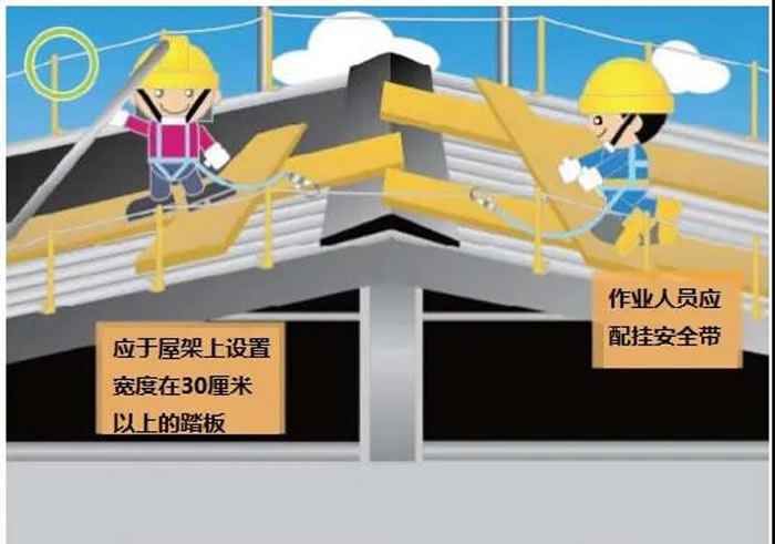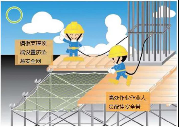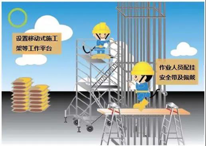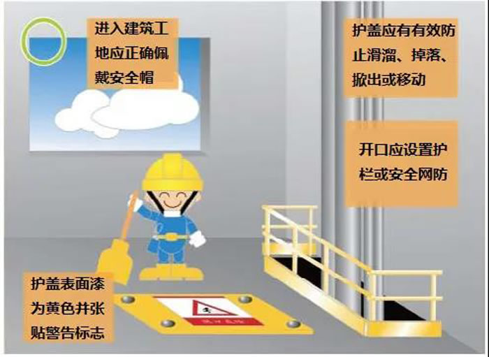 В - третьих, сделайте « пять боков» защиты: « Пять боков» означает периметр балкона, где еще не установлены перила, периметр кровли без защиты внешней рамы, периметр инженерного этажа рамы, обе стороны наклонной дорожки верхнего и нижнего проходов, внешнюю сторону разгрузочной платформы. Установка защитных ограждений или предохранительных сетей.