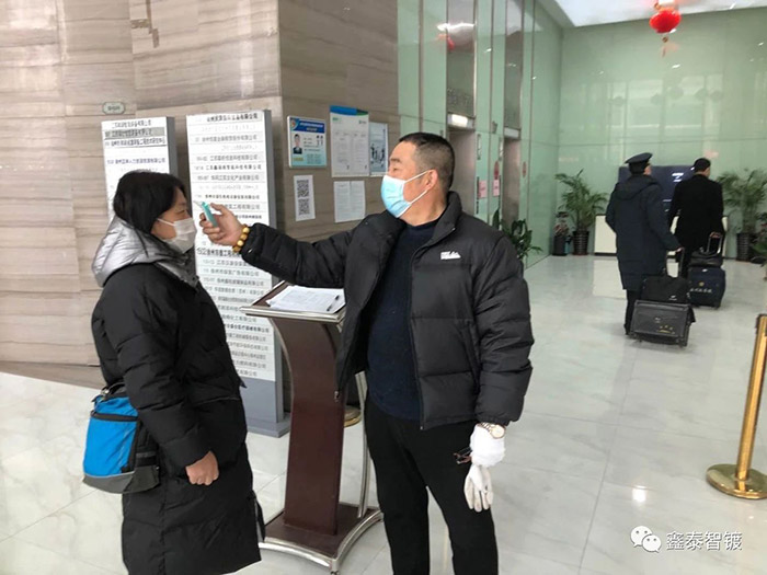 Для входящего и выходящего персонала Xintai проводится вторичное измерение температуры тела, чтобы убедиться, что температура тела точна.